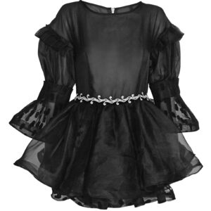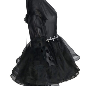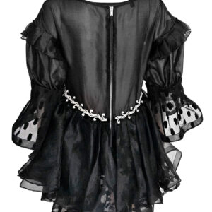 Romantic Flair Satin 3D Rose Jacket & Saya Skirt 2-piece set. Add some drama and slip into the Romantic Flair Satin 2-piece set. This mesmerizing fashion piece comes with a zipper-front jacket that’s covered in 3D rose florals for you to look absolutely stunning, featuring long sheer sleeves and sparkling rhinestone embellishments at cuffs and bodice. Sheer signature Saya skirt has a split opening to finish a statement-making ensemble, decorated with an embellished hem. Pants not included.