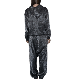 Rose Bomber Jacket. An elegant spin on the regular day bomber jacket. Elegant black rose fabric beautiful with delicate 3D roses made of satin ribbon. Quilted padded interior lining. Embellished front flap pockets and cuff details and zipper closure. Great for a special evening out – easily add to any outfit to keep warm or just to make a statement!